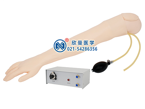 XM-S4-1高级全功能动脉与静脉穿刺手臂模型的皮肤采用高分子材料、血管采用乳胶材料、手臂骨采用发泡材料制成,肤质仿真度高,皮肤纹理清晰,设有手臂肘前区和手背部的静脉血管网以及手臂动脉血管,由手臂与电子血液循环装置组成,具有真实的血流动力学所产生的血液循环功能。